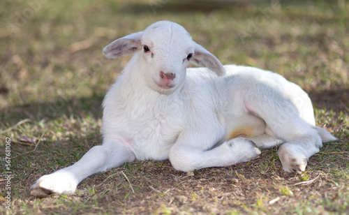 Fototapeta premium White Katahdin sheep lamb smiling