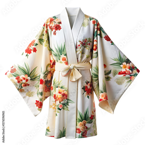 © MaryS, Naklejka premium white kimono with floral patterns isolated on transparent background