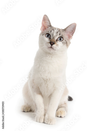 © Elayne, Naklejka premium white kitten seated looking up on white background
