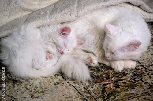 © LemPro Filming Life, Fototapeta premium White Kitten Sleeps Close-Up color low light