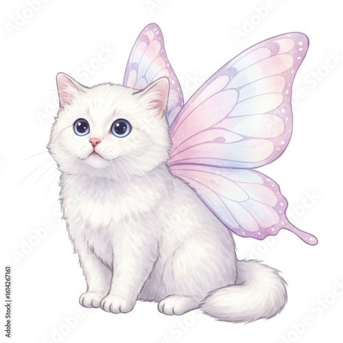 © Sakazuki, Obraz premium White Kitten with Pastel Butterfly Wings