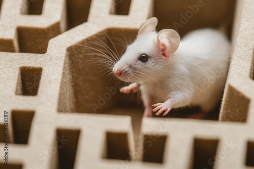 Obraz premium White Lab Mouse Exploring a Maze