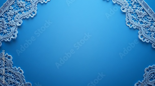 Fototapeta premium White lace border, blue background, invitation