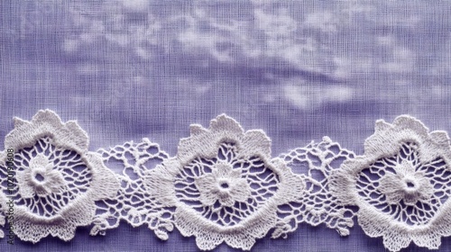 Obraz premium White Lace Trim on Purple Gridded Fabric