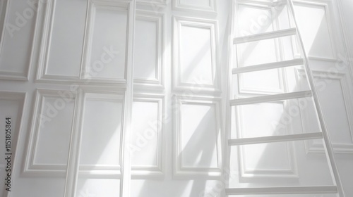Fototapeta premium White Ladders Lean Against Paneled Wall