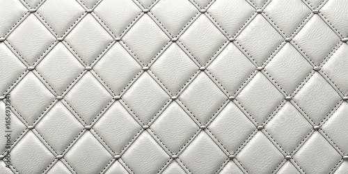 © NovaShots, Naklejka premium White Leather Diamond Stitch Pattern with Silver Studs Background Texture