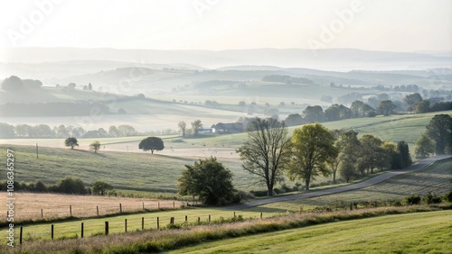 Naklejka premium White Light Blur on Countryside Landscape, peaceful countryside, focus, soft...