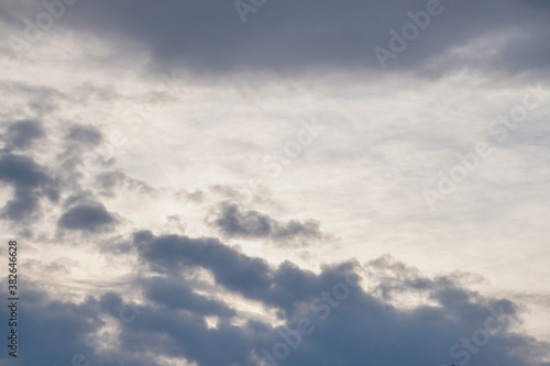 © Alexkarankevich, Fototapeta premium White light fluffy clouds in a blue sky with a solar flare.