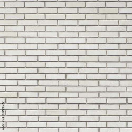 Obraz premium White light grey taupe old aged weathered fine brick wall texture pattern background closeup, large detailed textured horizontal grunge brickwork