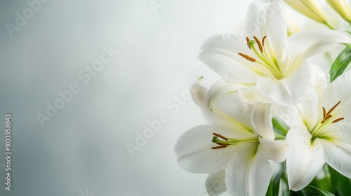 © ellisa_studio, Fototapeta premium White Lilies Bouquet Close-up