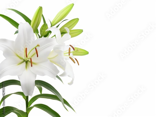 Obraz premium white lilies bunch on a white background, background with blooming white lily...
