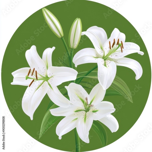 Naklejka premium White lilies in circle