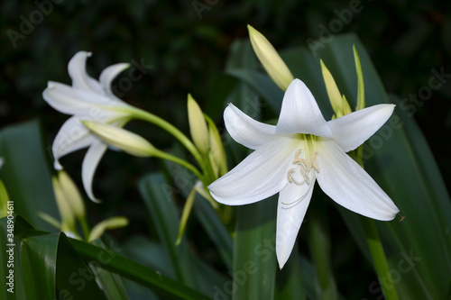 Fototapeta premium white lilies in the garden in the evening close-up