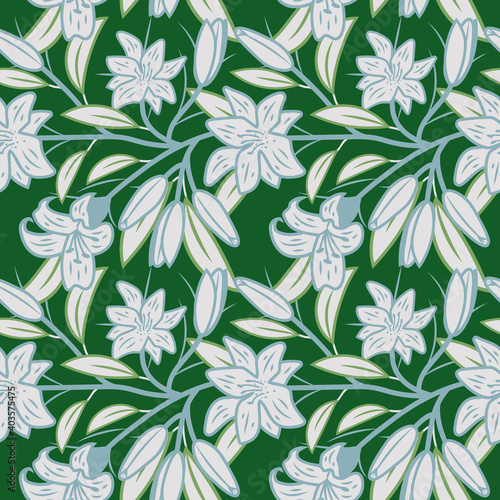 © Дмитрий Котов, Naklejka premium White lilies on green background