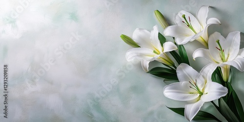 © a muh sakaria, Fototapeta premium White Lilies on Light Green Background