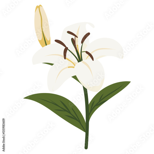 © Rawpixel.com, Fototapeta premium White lilly flower illustration plant lily vector