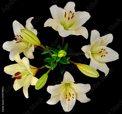 © IgorYegorov, Fototapeta premium white Lily bouquet on top