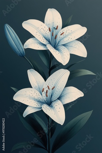 Fototapeta premium White Lily Flower Illustration on a Dark Blue Background