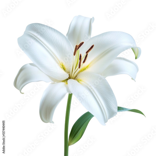 Fototapeta premium White lily flower with delicate petals isolated on transparent background...