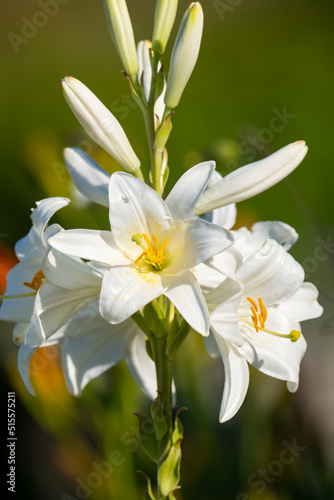 © Martin, Fototapeta premium White lily (Lilium candidum) lit by the sun. Close up photo.
