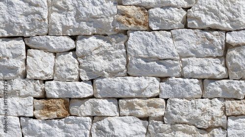 Fototapeta premium White limestone wall texture creating a rustic stacked stone background, natural irregular rock surface providing a robust architectural pattern for construction and design