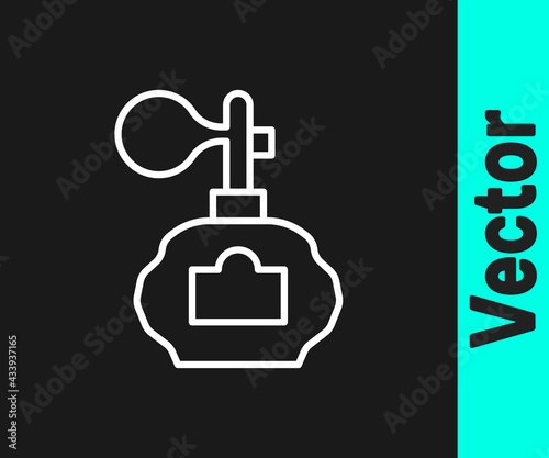 Obraz premium White line Aftershave bottle with atomizer icon isolated on black background....