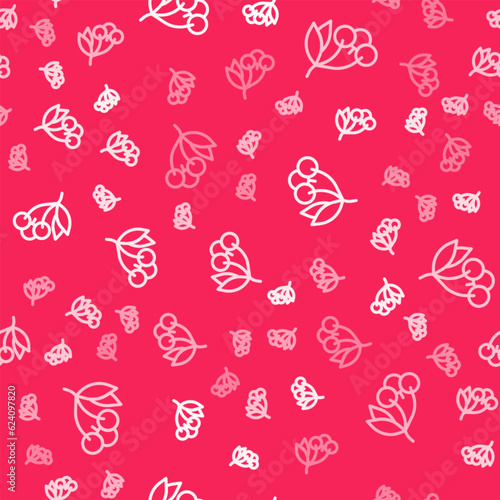 Fototapeta premium White line Fresh summer berries icon isolated seamless pattern on red background. Berry fruit. Vector