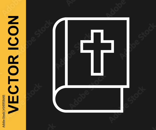 © Iryna, Fototapeta premium White line Holy bible book icon isolated on black background. Vector