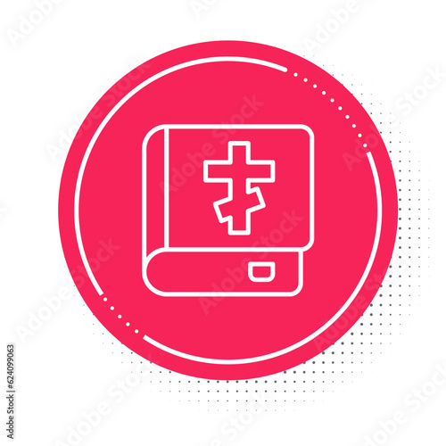 Fototapeta premium White line Holy bible book icon isolated on white background. Red circle button. Vector