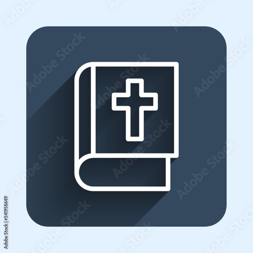 Obraz premium White line Holy bible book icon isolated with long shadow background. Blue square button. Vector