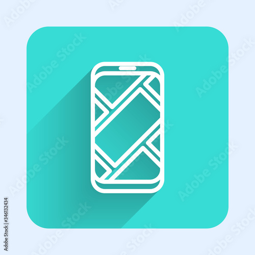 © Kostiantyn, Fototapeta premium White line Infographic of city map navigation icon isolated with long shadow. Mobile App Interface concept design. Geolacation concept. Green square button. Vector Illustration