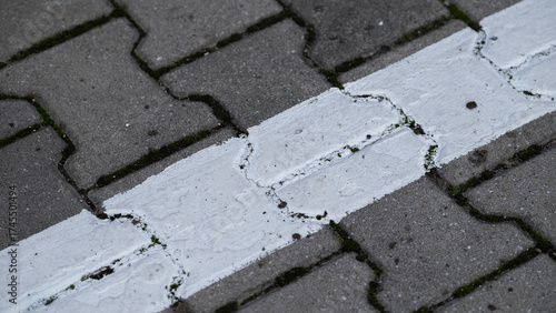 Obraz premium White line marking on cracked pavement