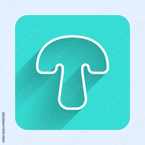 © Kostiantyn, Naklejka premium White line Mushroom icon isolated with long shadow. Green square button. Vector