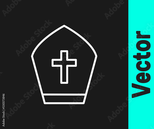 © Kostiantyn, Fototapeta premium White line Pope hat icon isolated on black background. Christian hat sign. Vector