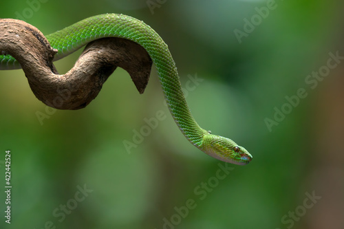 © DS light photography, Obraz premium White-lipped island pit viper on a tree branch