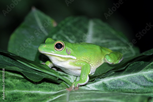 Naklejka premium White lipped tree frog on a leaves