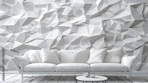 © irawan, Fototapeta premium white living room interior with 3d low poly wall