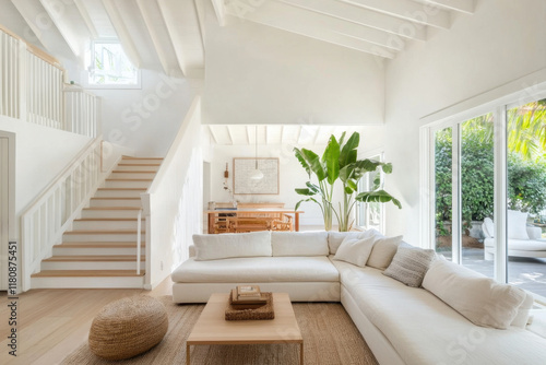 © Natee, Fototapeta premium White living room with a white couch and a white coffee table
