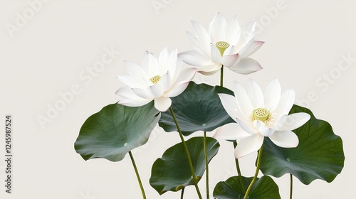 Fototapeta premium White lotus flowers, serene background, peaceful scene, perfect for...