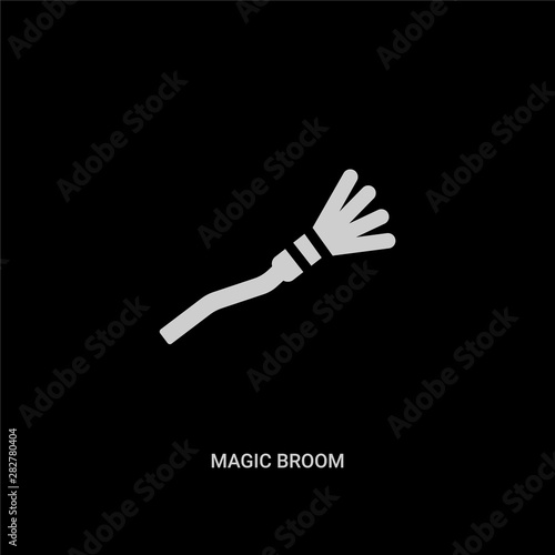 Obraz premium white magic broom vector icon on black background. modern flat magic broom...