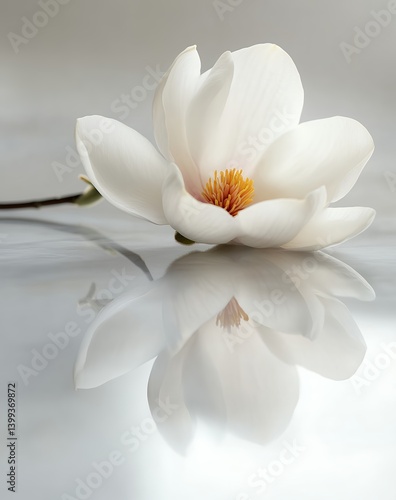 © sasisom, Obraz premium White Magnolia Blossom Reflection Closeup Still Life Photography