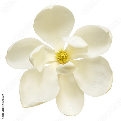 © robynmac, Fototapeta premium White Magnolia Flower Top View Isolated