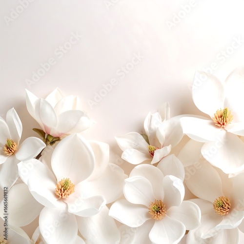 Obraz premium White Magnolia Flowers Flatlay, Soft Background