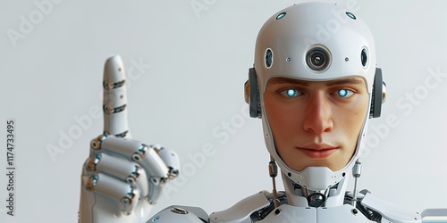 © Saad, Naklejka premium White male cyborg pointing his finger 3D rendering Minimalistic Photo