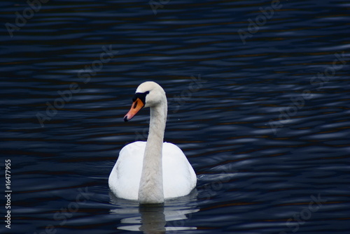 © hladkymartin, Fototapeta premium White male swan floating on river