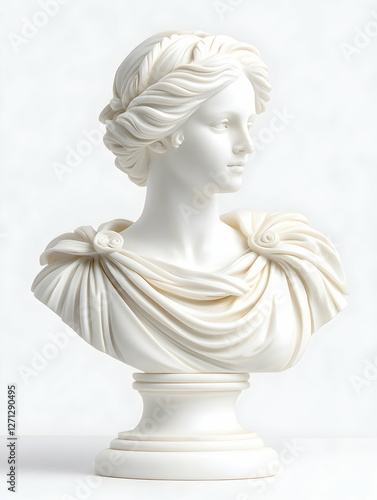 Naklejka premium White marble bust, classical style, studio shot, serene background, art decor