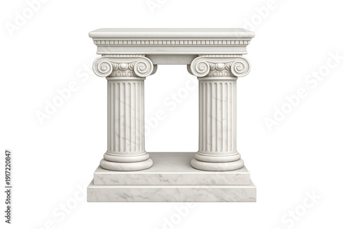 Fototapeta premium White marble ionic columns forming a classical pedestal podium, empty display stand with transparent background