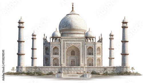 © Rizal, Obraz premium White Marble Taj Mahal Landmark Iconic Architectural Monument in Bright Sky