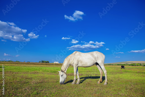 Obraz premium white mare grazing