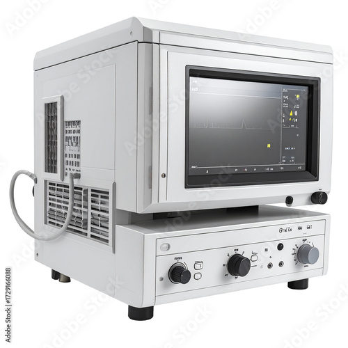 Fototapeta premium White Medical Ventilator and Diagnostic Monitor with Screen Displaying Patient Data